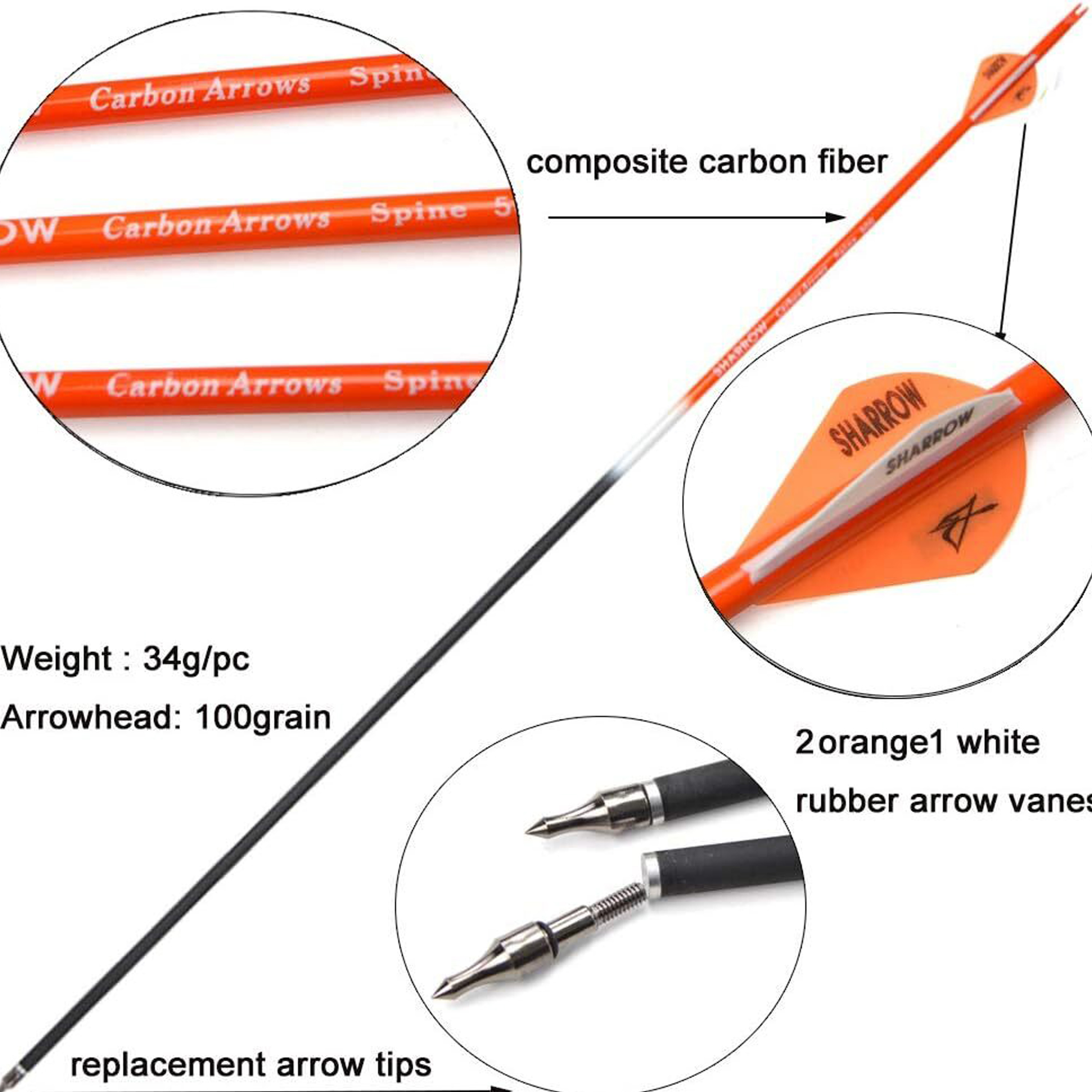 12X Archery Carbon Arrows for Targert Hunting Bow Shooting