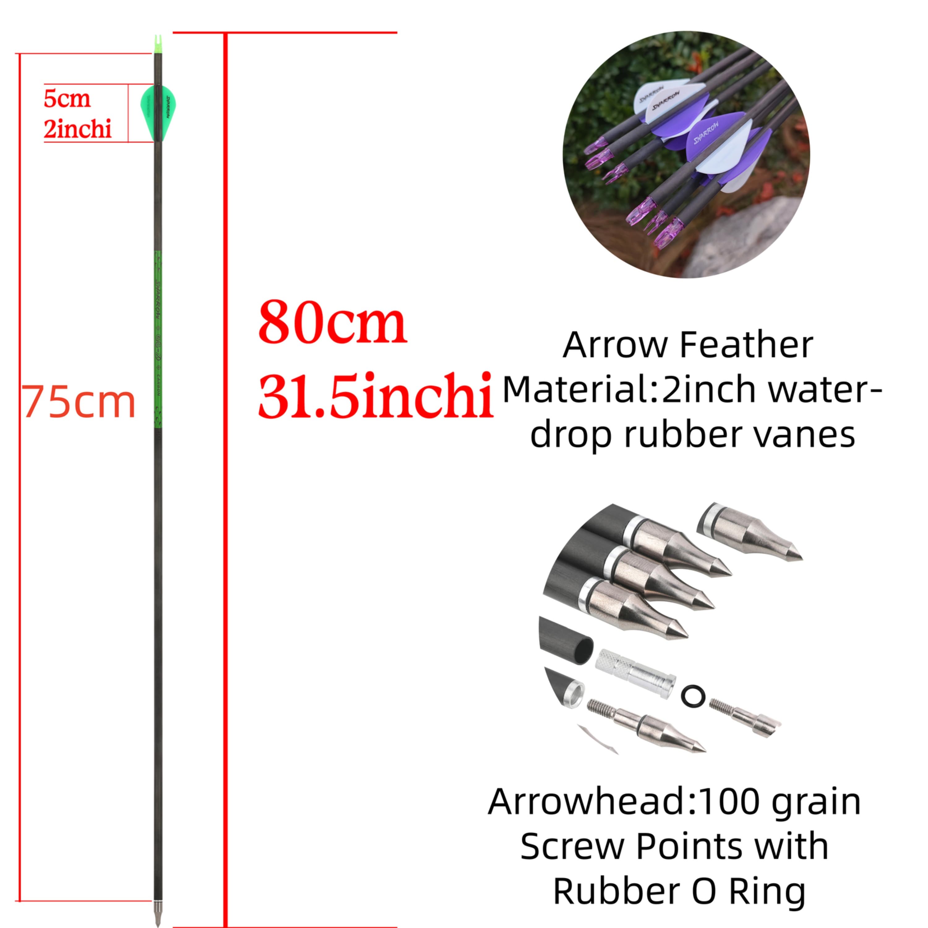 30" Carbon Archery Arrows SP300-800 with Screw-In Field Tips