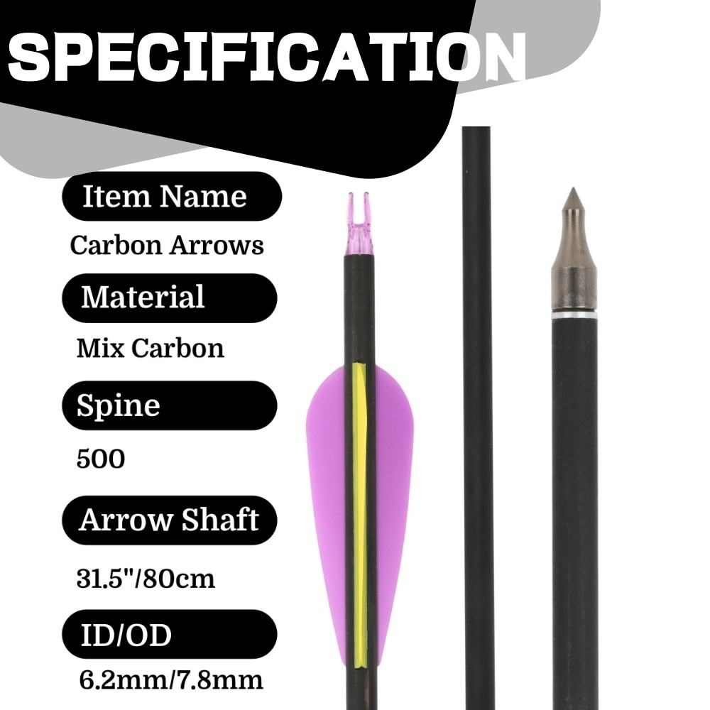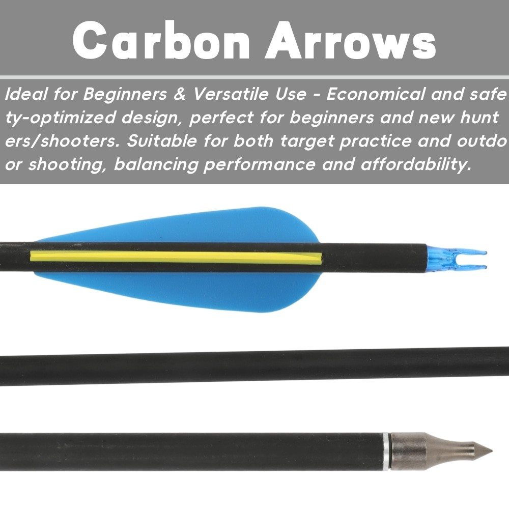 30" Spine 500 Carbon Arrows Adjustable Nock 12pcs