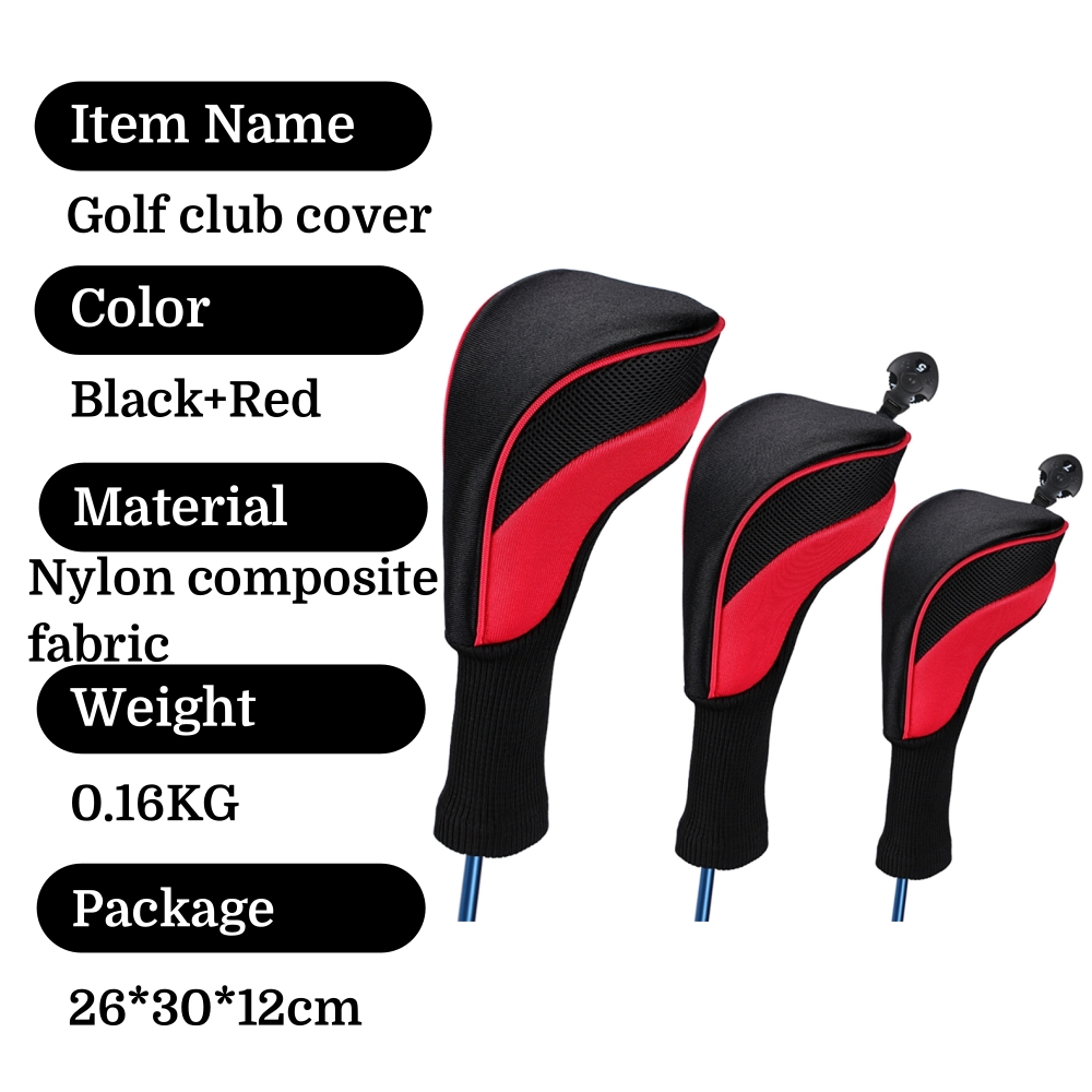 3Pcs Golf Club Head Cover Set Driver Fairway Hybrid Headcovers Tags Protection