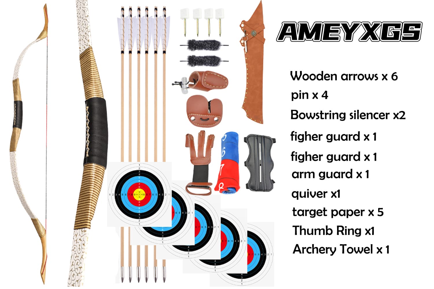 • Complete Ready-to-Shoot Traditional Kit: Comes with everything needed to start shooting right away, including traditional wooden arrows for an authentic experience, protective gear, and target papers.