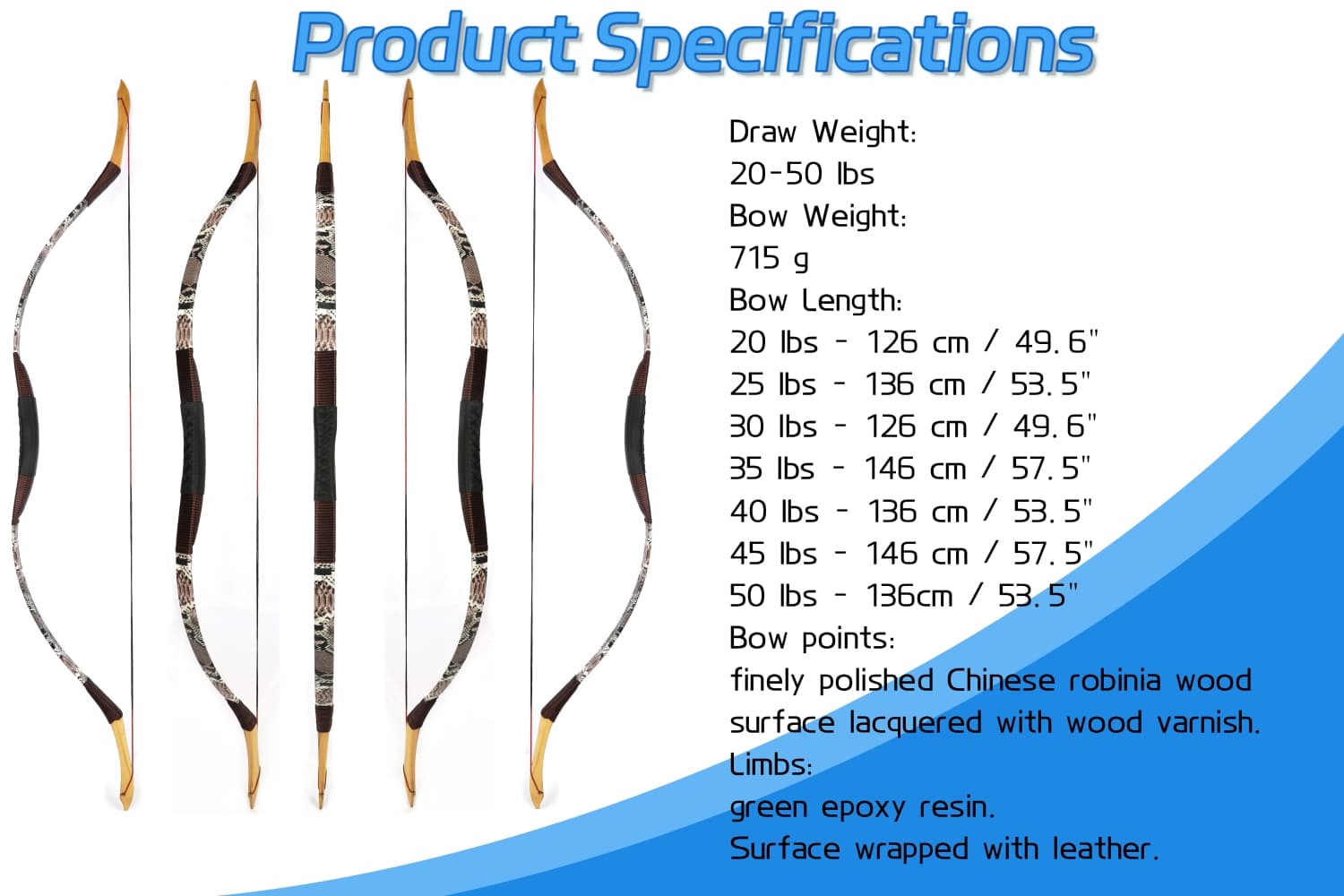 Traditional Wood Recurve Bow Handmade Horse Bow 20-50lbs RH LH
